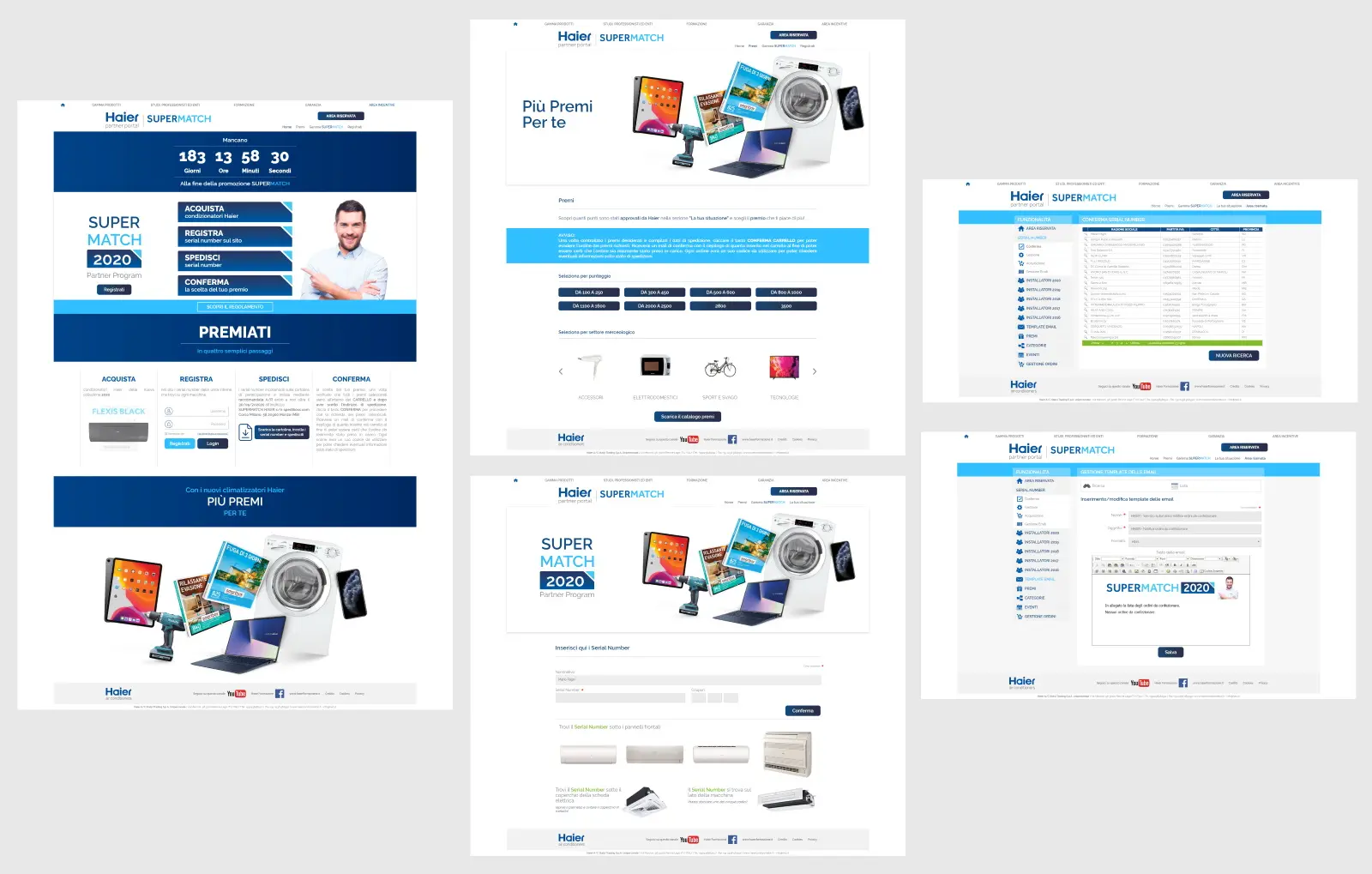 Il sito web è stato creato nel 2012 per gestire la promozione SuperMatch di Haier ed ogni anno viene aggiornato sia nella grafica che nelle funzionalità. Nel 2016 il restyling è stato fatto per redere il sito web responsive. Questo applicativo è stato realizzato per